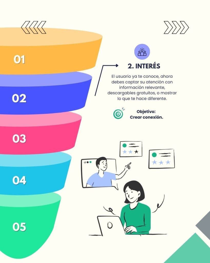 - Diseña contenido para cada fase del embudo.